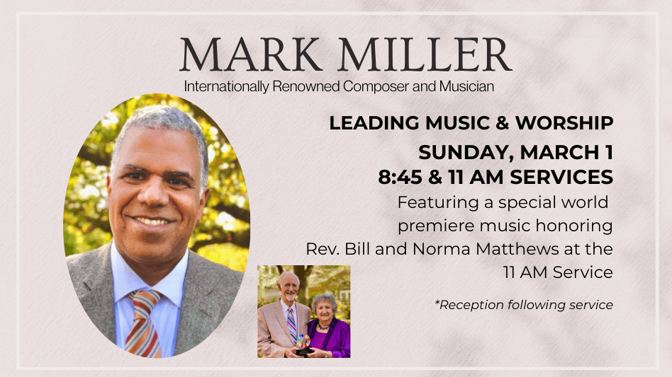 Looking ahead, mark your calendar for Sunday, March 1, when composer and church musician Mark Miller will lead us in worship and premiere a new musical work honoring Rev. Bill Matthews and Norma Matthews. That evening, Mark Miller will also present a free concert titled Let Justice Roll at 6:00 pm at UPUMC, featuring the choirs of University Park UMC and Greenland Hills UMC. Save these dates and join us as we celebrate the power of music to deepen faith, inspire justice, and bring our community together.